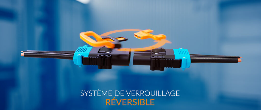 Le dispositif de verrouillage breveté est réversible, permettant de s’adapter aux contraintes dimensionnelles de toutes les installations, y compris des batteries lithium.