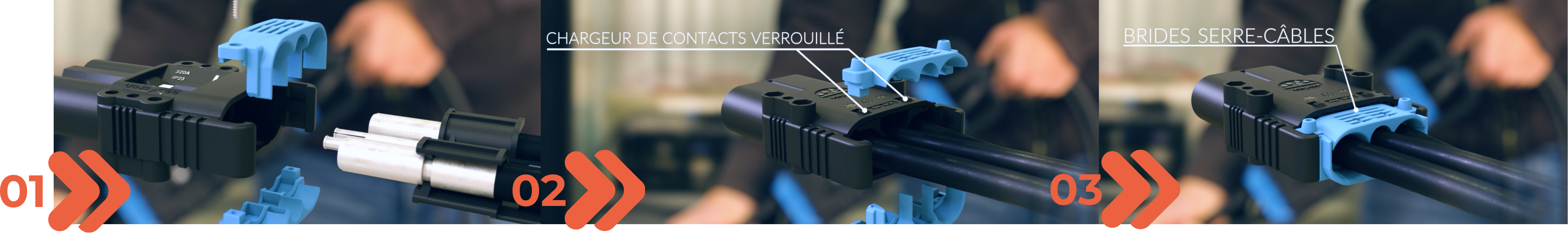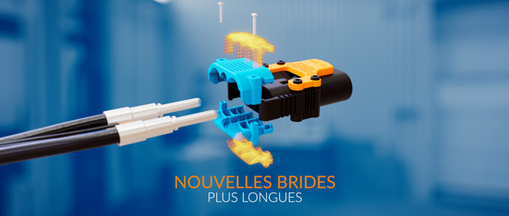 Les brides de nos connecteurs 160A et 320A sont spécialement conçues pour maintenir fermement les câbles sans risque de coupure. Leur forme assure un alignement parfait avec les câbles et les contacts, optimisant ainsi la connexion.