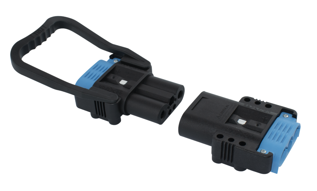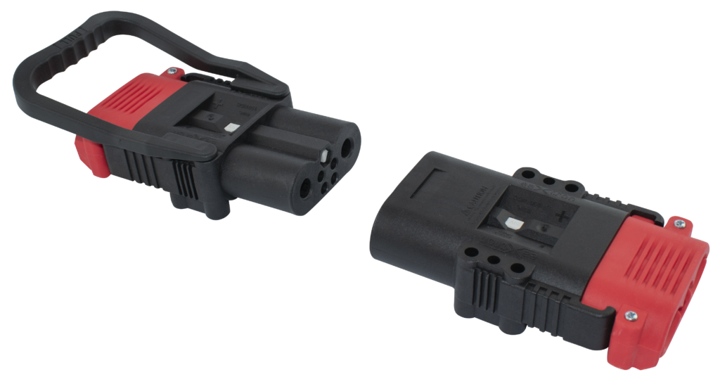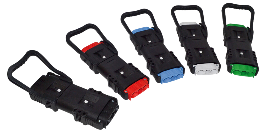 Les connecteurs 160A et 320A sont dotés de brides de câbles codées par couleur, permettant une identification rapide de la tension de l’appareil. Cela prévient les risques de dommages causés par l’utilisation de connecteurs inadaptés.